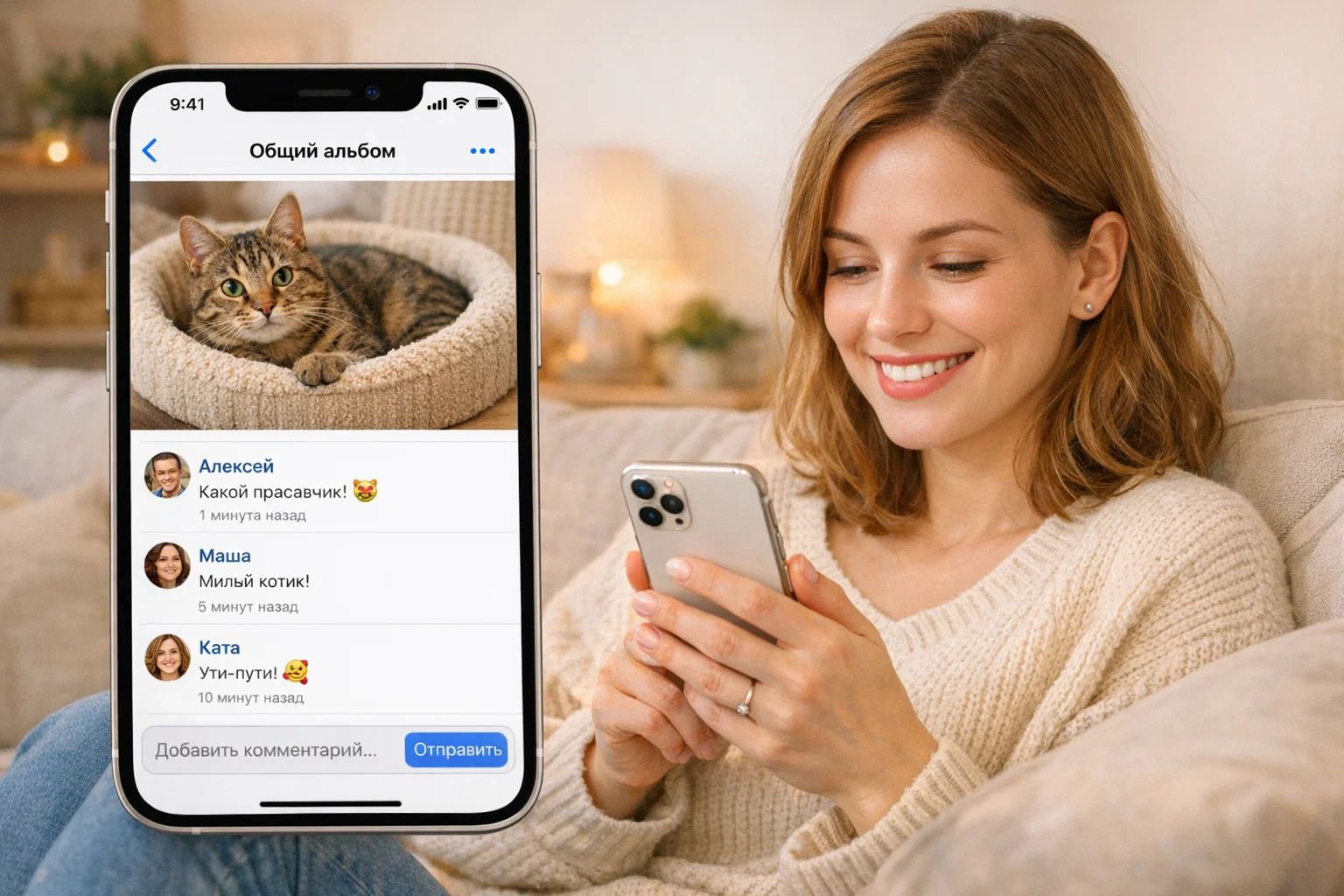 Схема простая до гениальности: создаёте общий альбом, приглашаете туда нужных людей по номеру или почте, загружаете любую картинку — и начинаете общаться в комментариях под ней. Фото, видео, длинные цепочки сообщений — всё работает. Трафик при этом идёт через iCloud, который российские блокировщики пока не трогают.